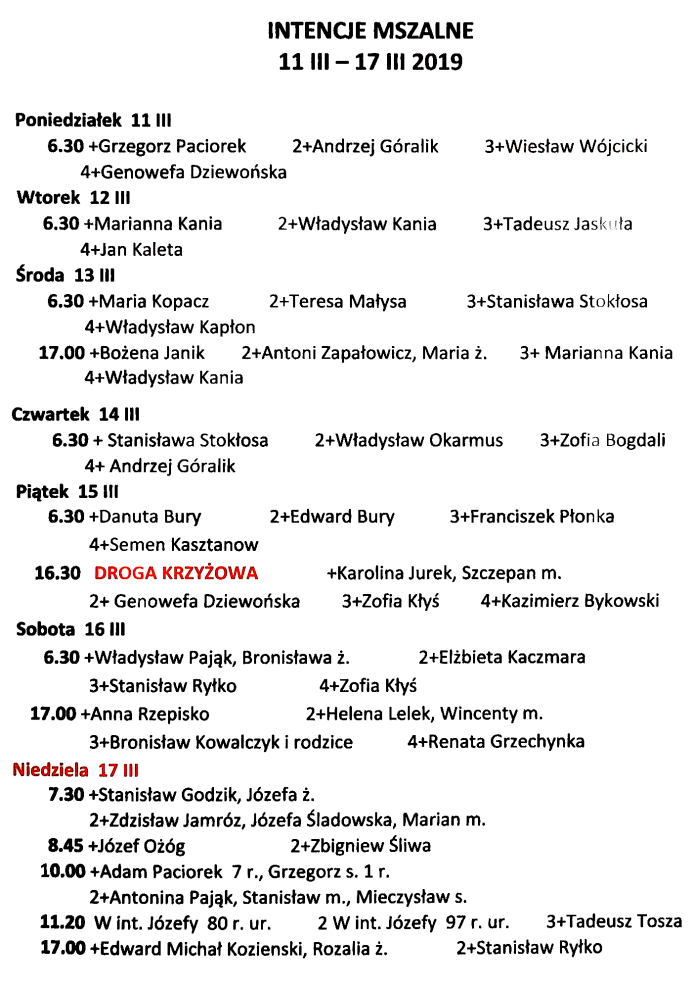 Intencje mszalne 10 – 16 listopada 2025 r.