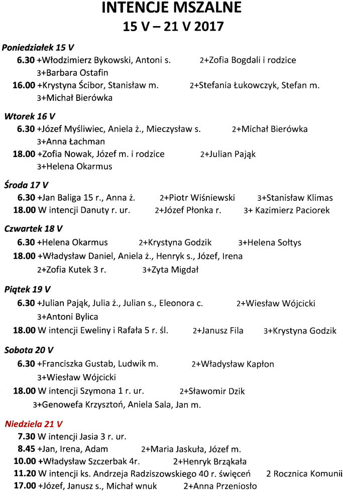 Intencje mszalne 3 – 9 listopada 2025 r.