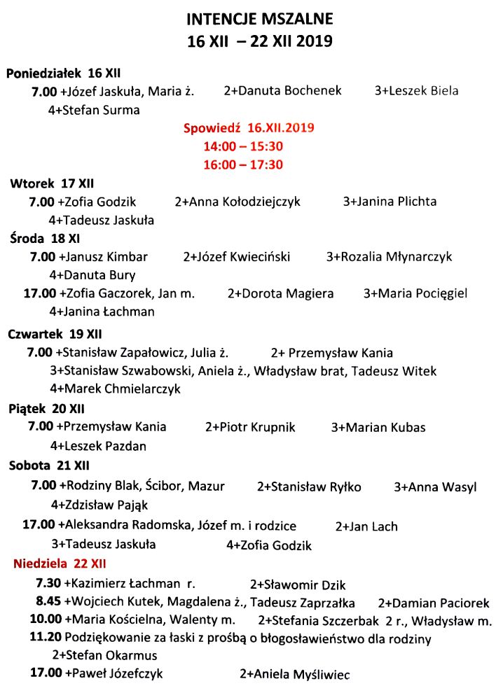 Intencje mszalne 17 – 23 listopada 2025 r.