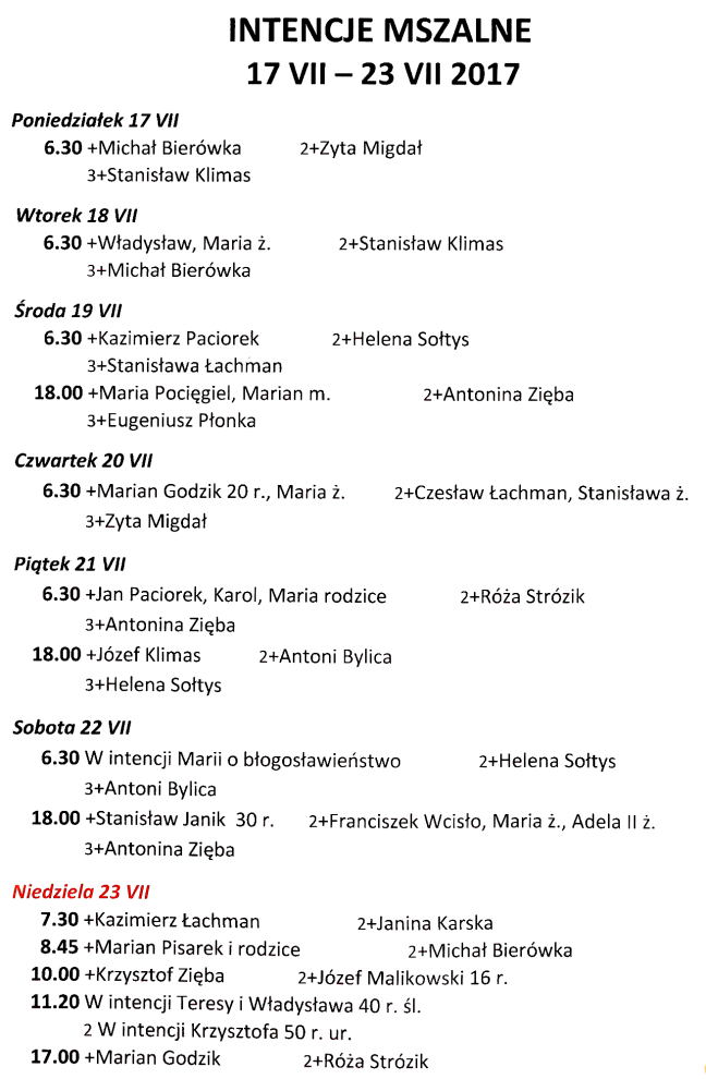 Intencje mszalne 17 – 23 listopada 2025 r.