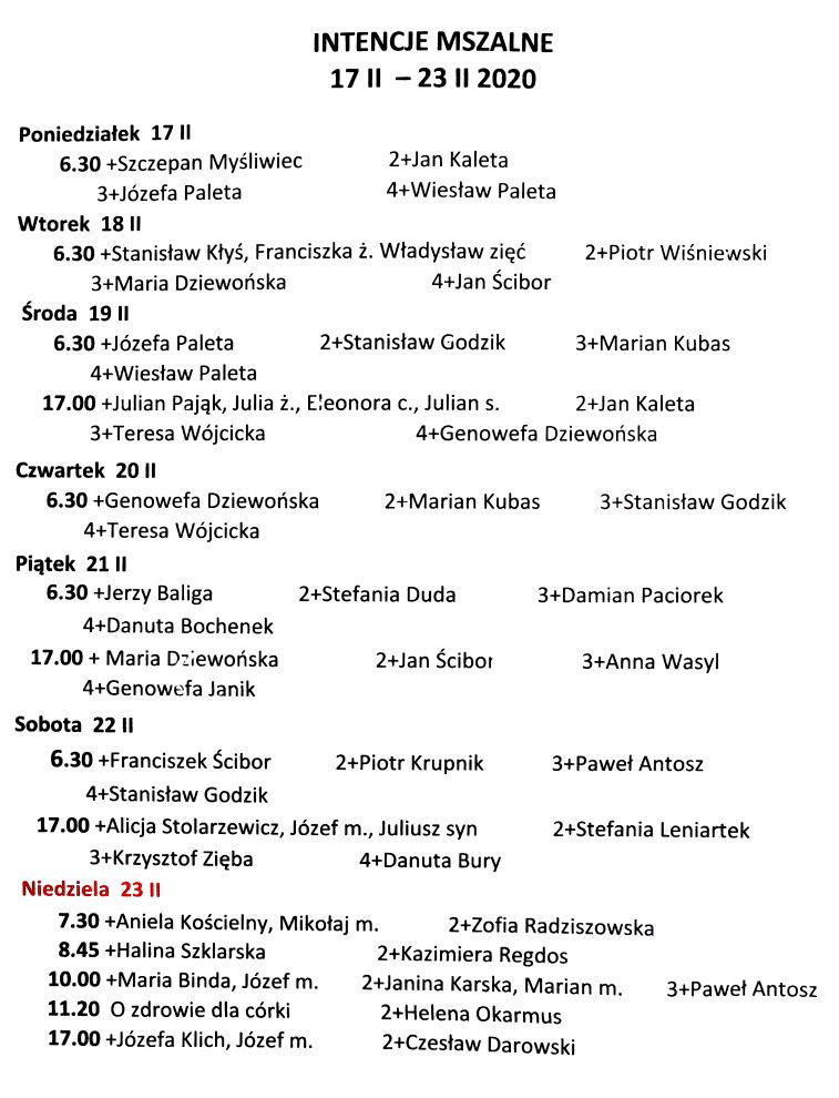 Intencje mszalne 17 – 23 listopada 2025 r.