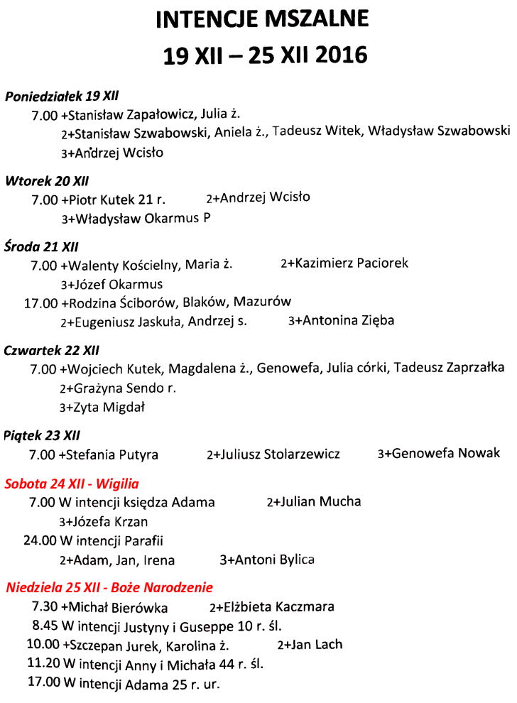 Intencje mszalne 17 – 23 listopada 2025 r.
