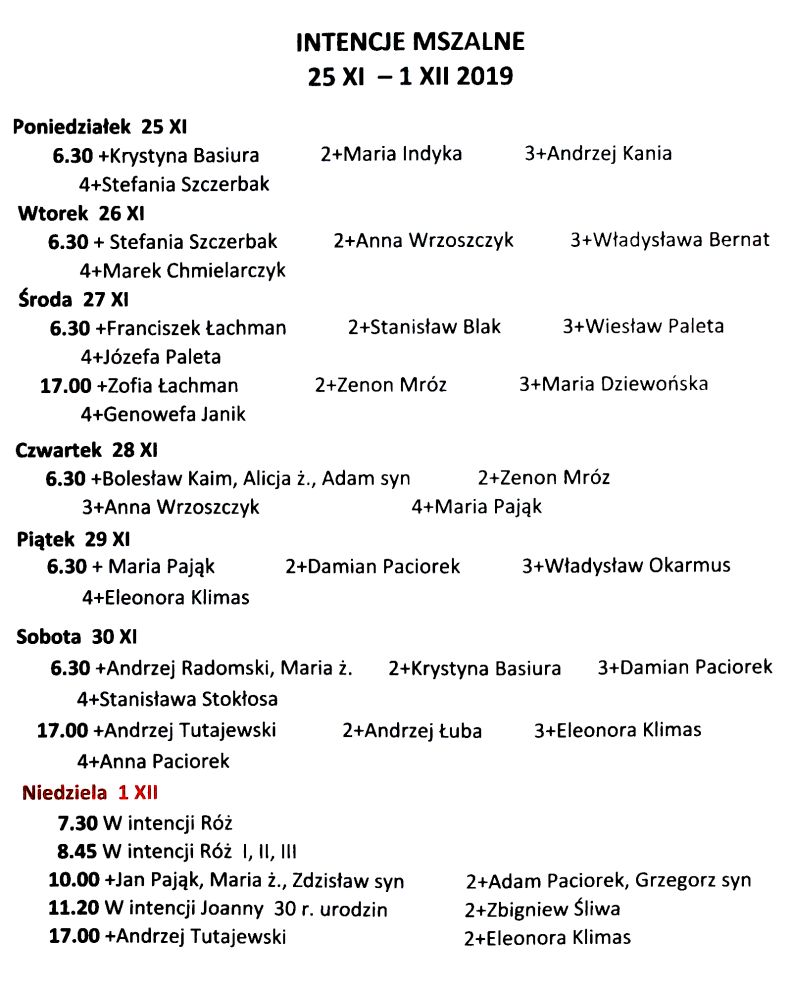 Intencje mszalne 17 – 23 listopada 2025 r.