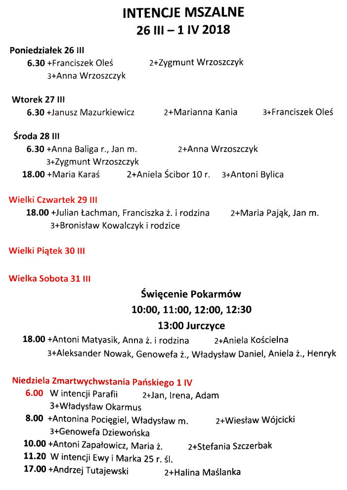 Intencje mszalne 17 – 23 listopada 2025 r.
