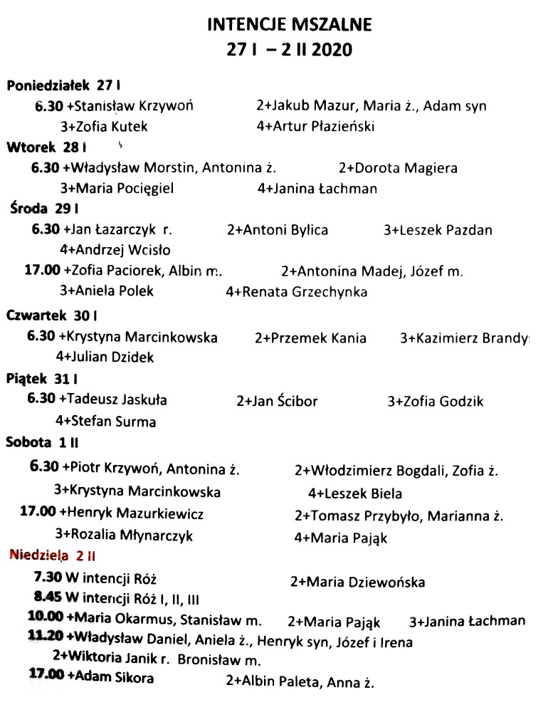 Intencje mszalne 17 – 23 listopada 2025 r.