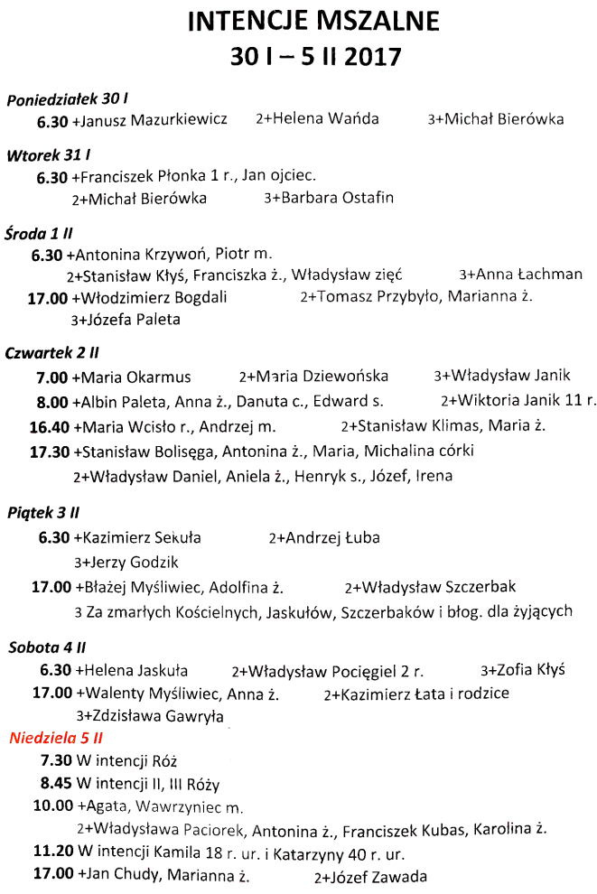 Intencje mszalne 17 – 23 listopada 2025 r.