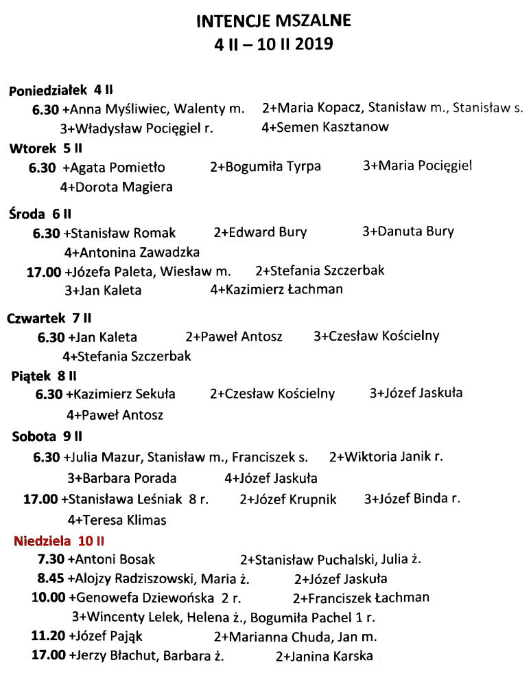 Intencje mszalne 10 – 16 listopada 2025 r.