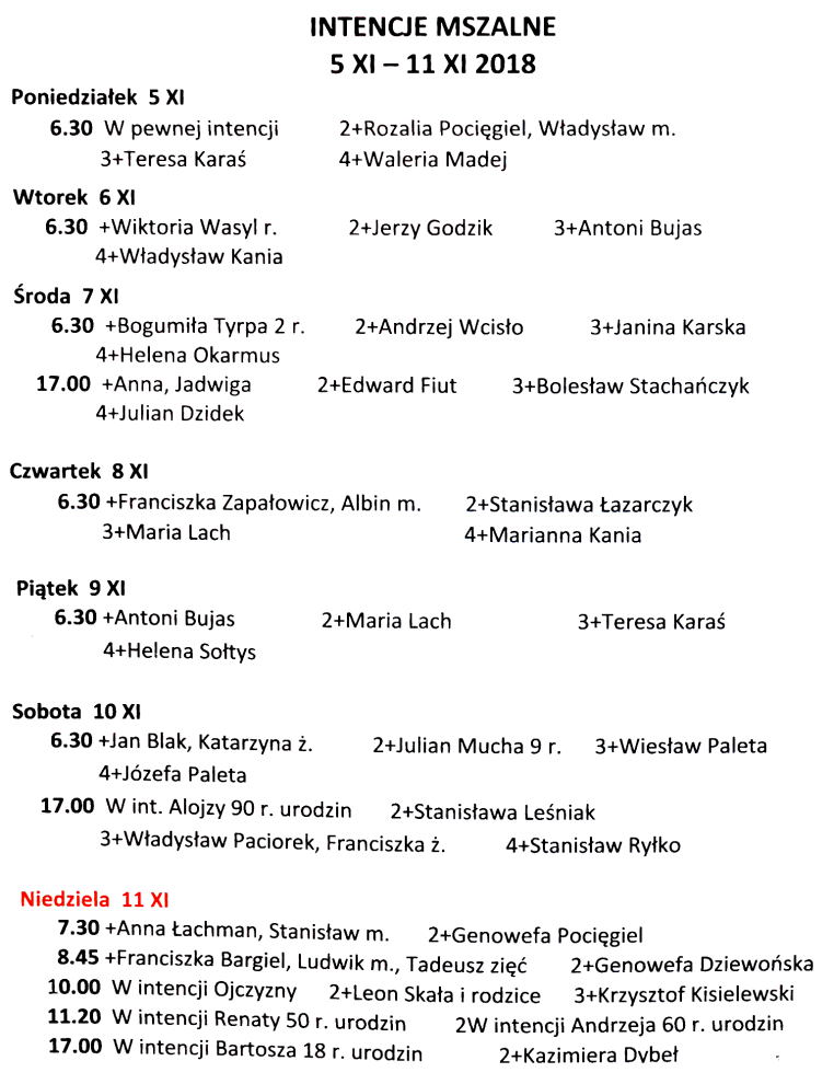 Intencje mszalne 10 – 16 listopada 2025 r.