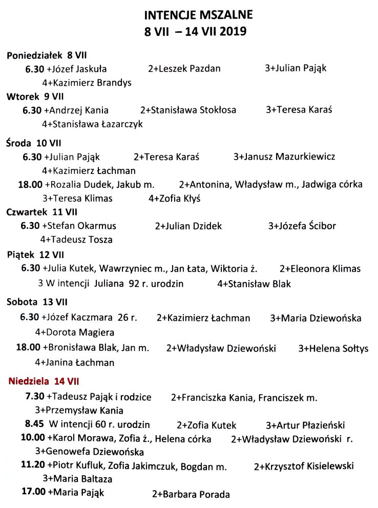 Intencje mszalne 10 – 16 listopada 2025 r.