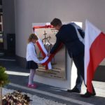 Następnie wszyscy uczestnicy przeszli do szkoły, gdzie została odsłonięta tablica upamiętniająca Patrona Szkoły Podstawowej w Radziszowie – Św. Jana Pawła II, której poświęcenia dokonał ksiądz prałat a aktu odsłonięcia najmłodsza uczennica i najstarszy uczeń obecnie uczęszczający do szkoły.