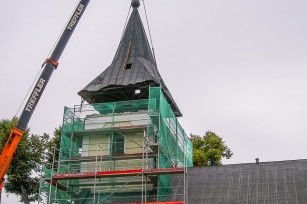 Uszkodzenie wieży i demontaż hełmu w radziszowskim kościele