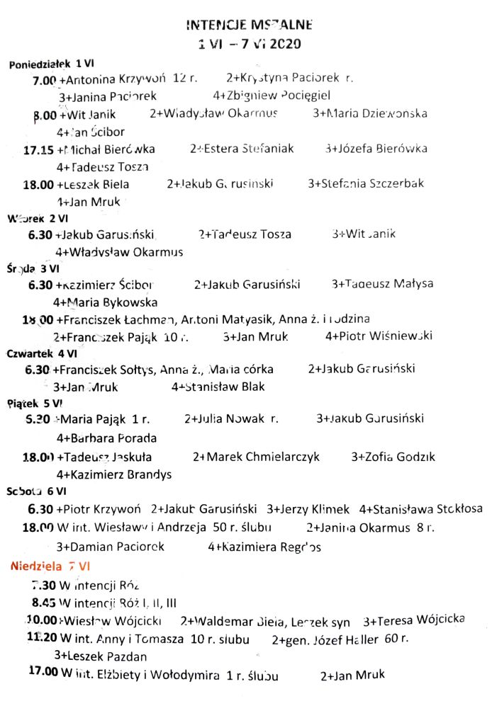 Intencje mszalne 8 – 14 grudnia 2025 r.