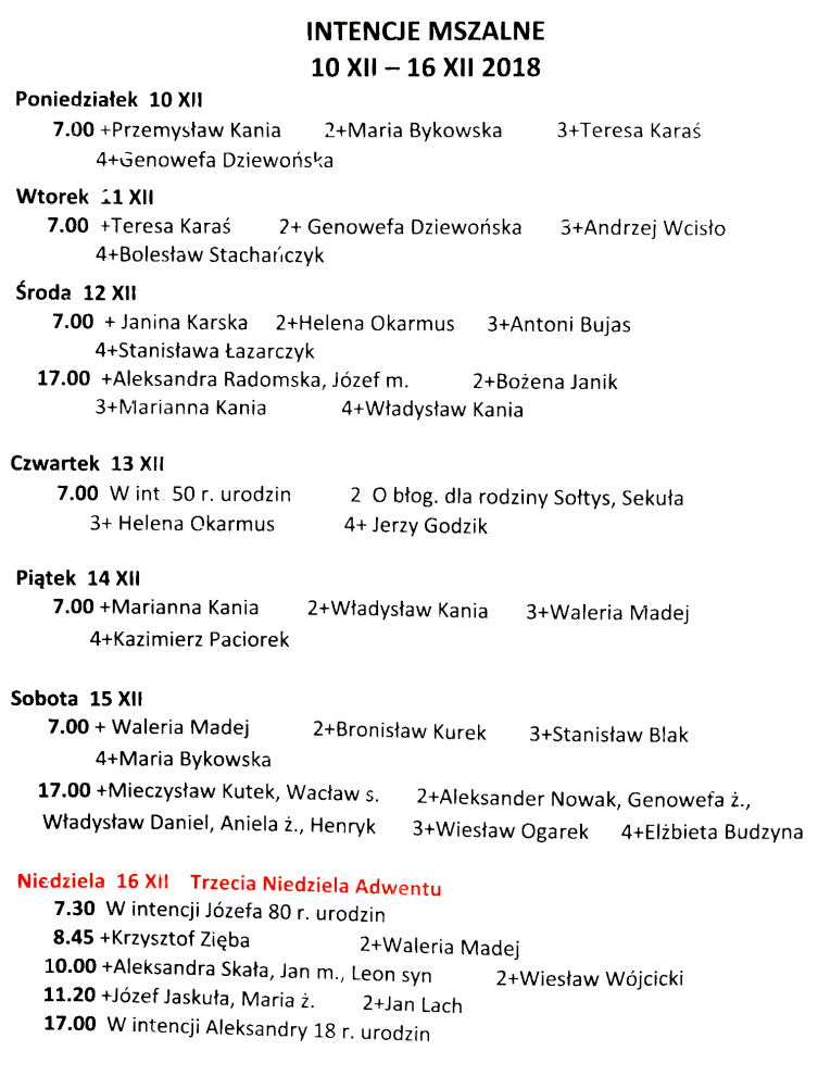 Intencje mszalne 10 – 16 listopada 2025 r.