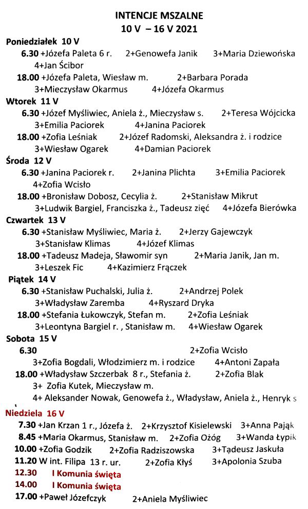 • Następny post Ogłoszenia Parafialne VI Niedziela Wielkanocna – 9 maja 2021 r.