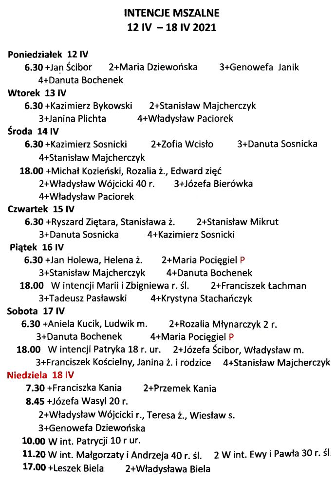 Parafia Radziszów – intencje mszalne 7-13 kwietnia 2014 r.