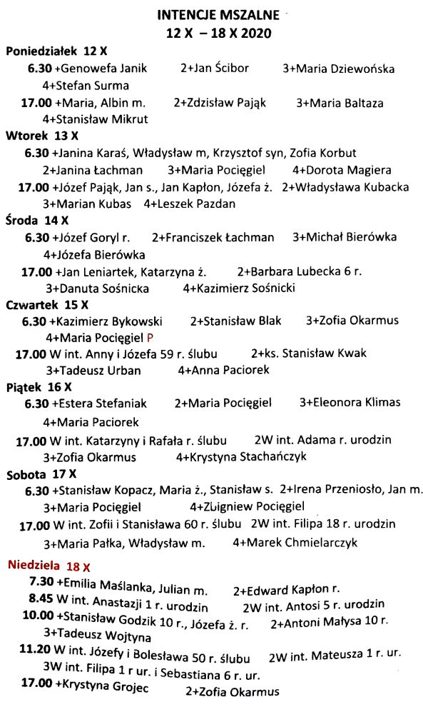 Intencje mszalne 27 października – 2 listopada 2025 r.