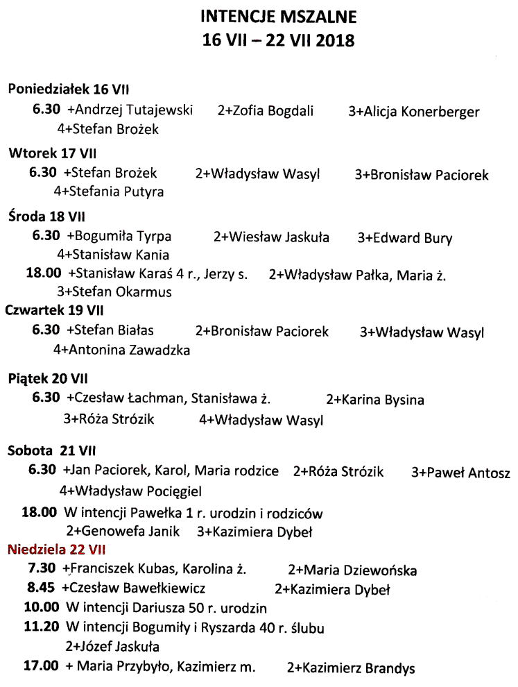 Intencje mszalne 10 – 16 listopada 2025 r.