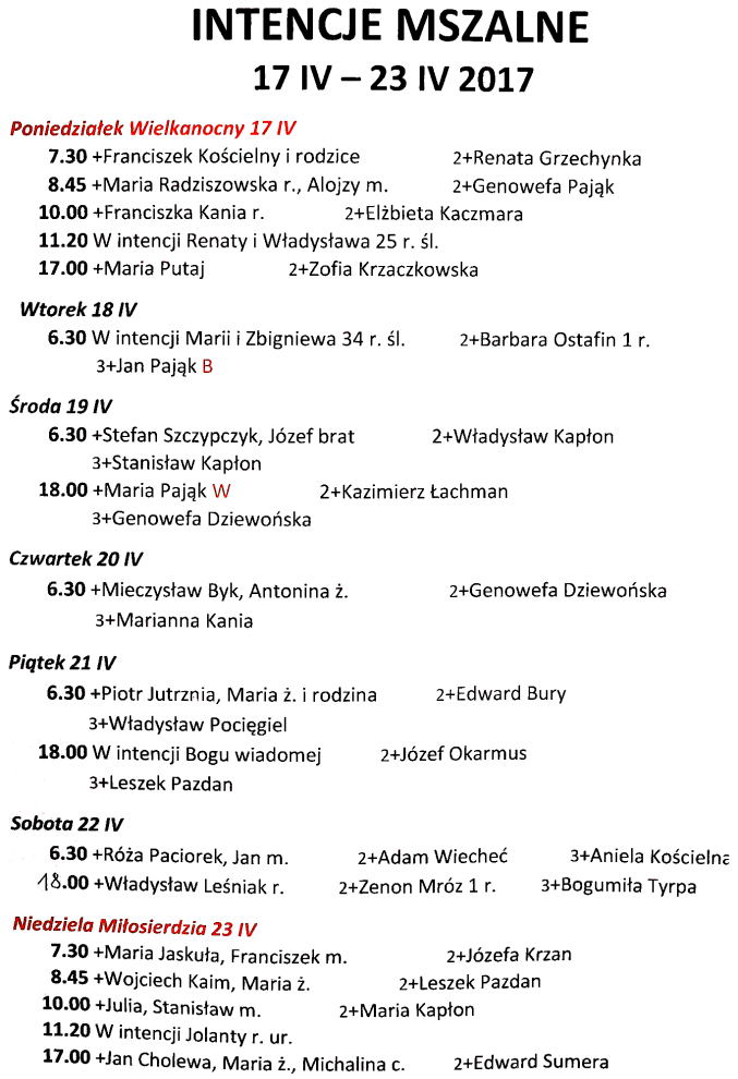 Parafia Radziszów – intencje mszalne 7-13 kwietnia 2014 r.