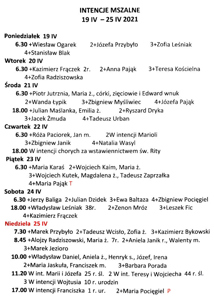 Intencje mszalne 24 – 30 listopada 2025 r.