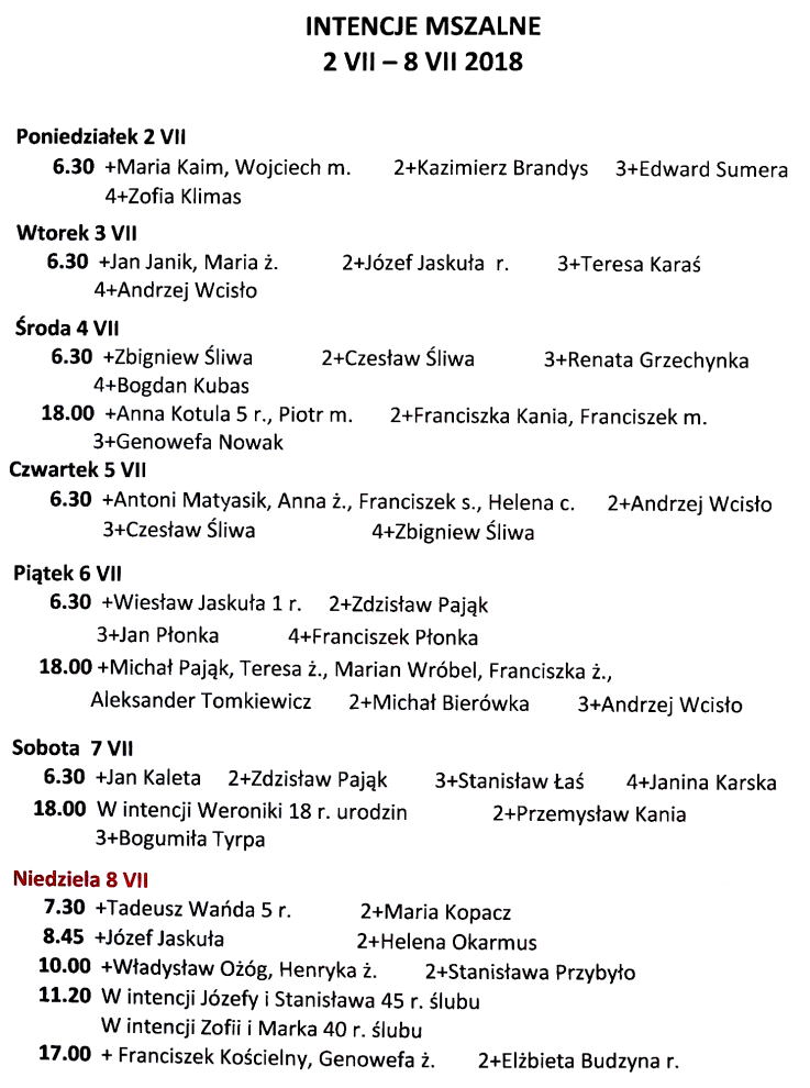 Intencje mszalne 3 – 9 listopada 2025 r.