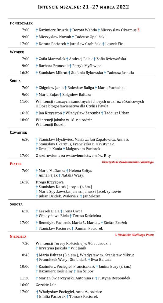 Intencje mszalne 27 października – 2 listopada 2025 r.