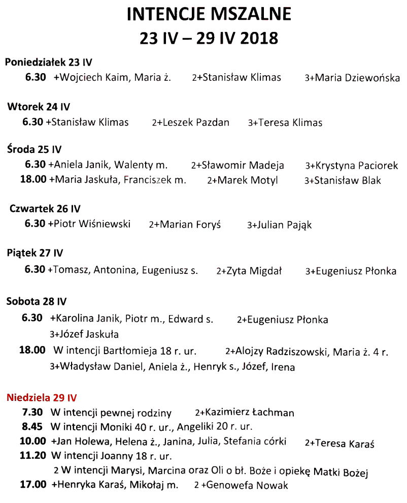 Parafia Radziszów – intencje mszalne 7-13 kwietnia 2014 r.