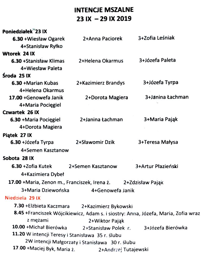 Intencje mszalne 15 – 21 grudnia 2025 r.