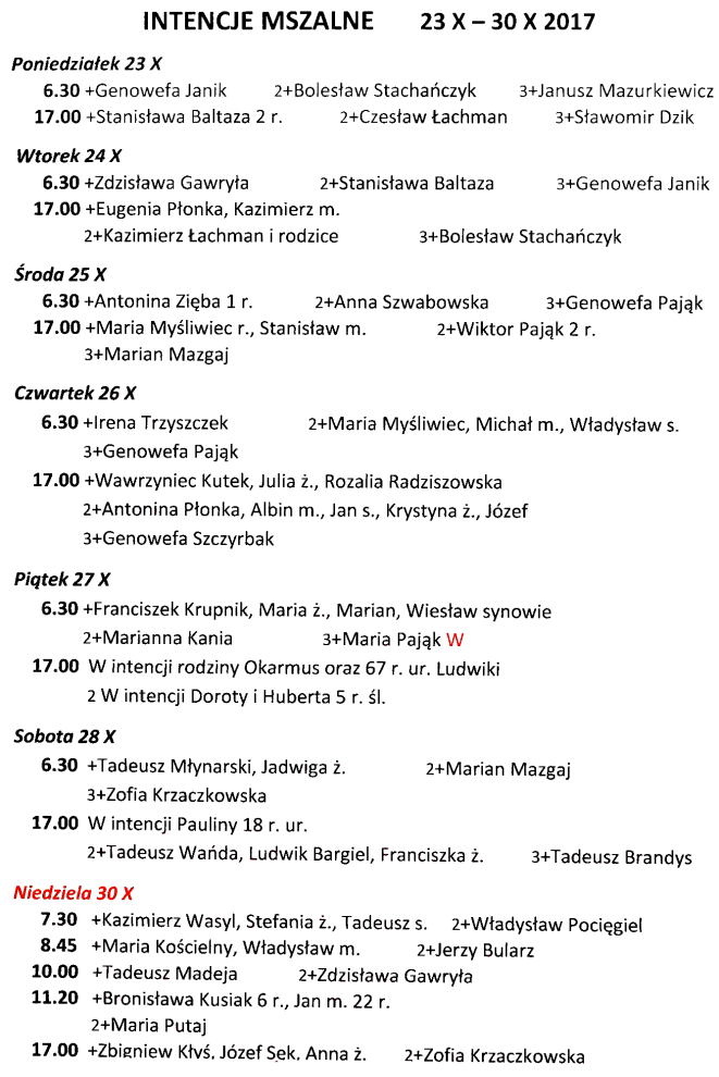 Intencje mszalne 17 – 23 listopada 2025 r.