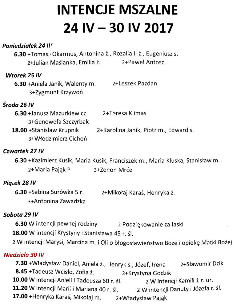 Parafia Radziszów – intencje mszalne 7-13 kwietnia 2014 r.