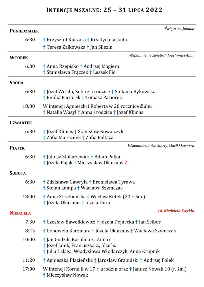 Intencje mszalne 27 października – 2 listopada 2025 r.