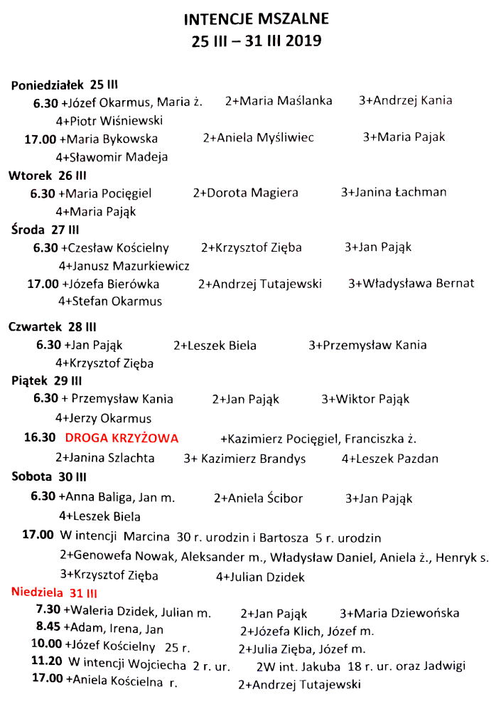 Intencje mszalne 17 – 23 listopada 2025 r.