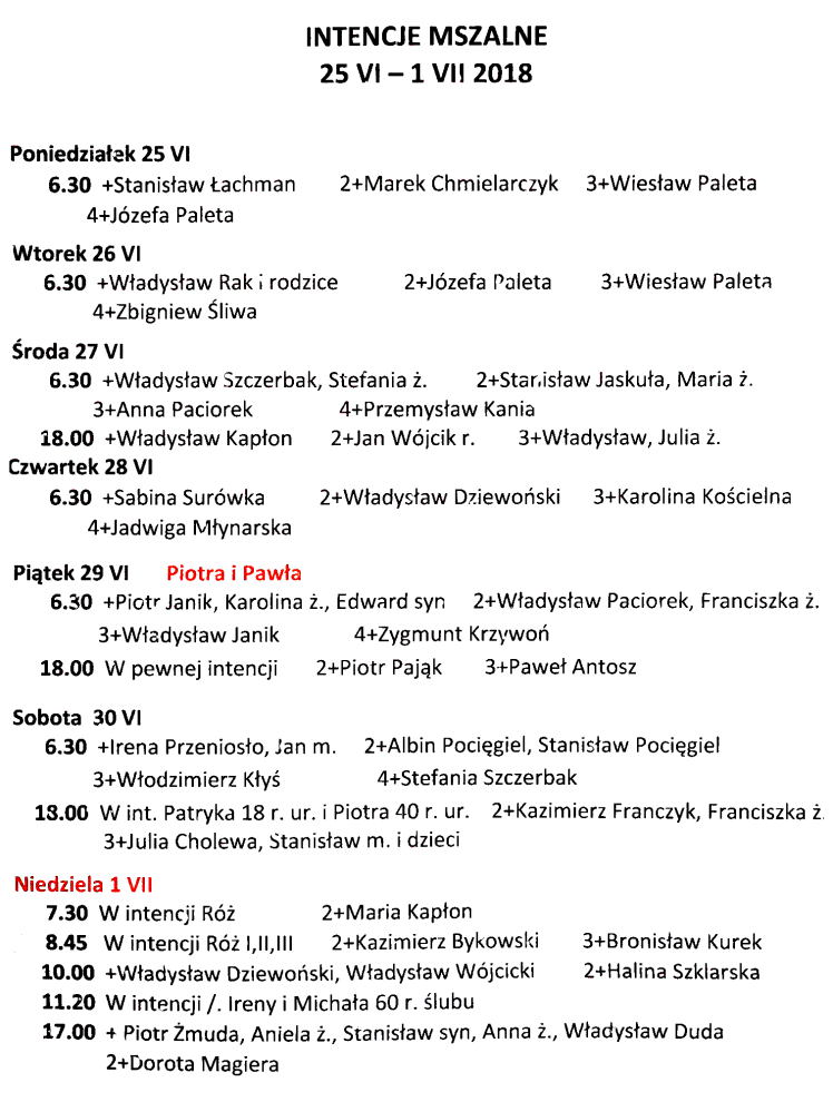 Intencje mszalne 17 – 23 listopada 2025 r.