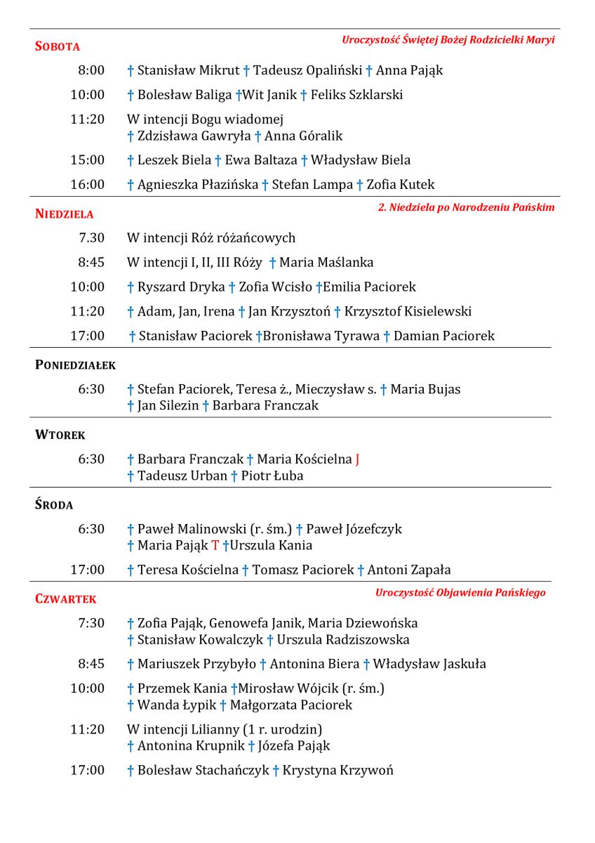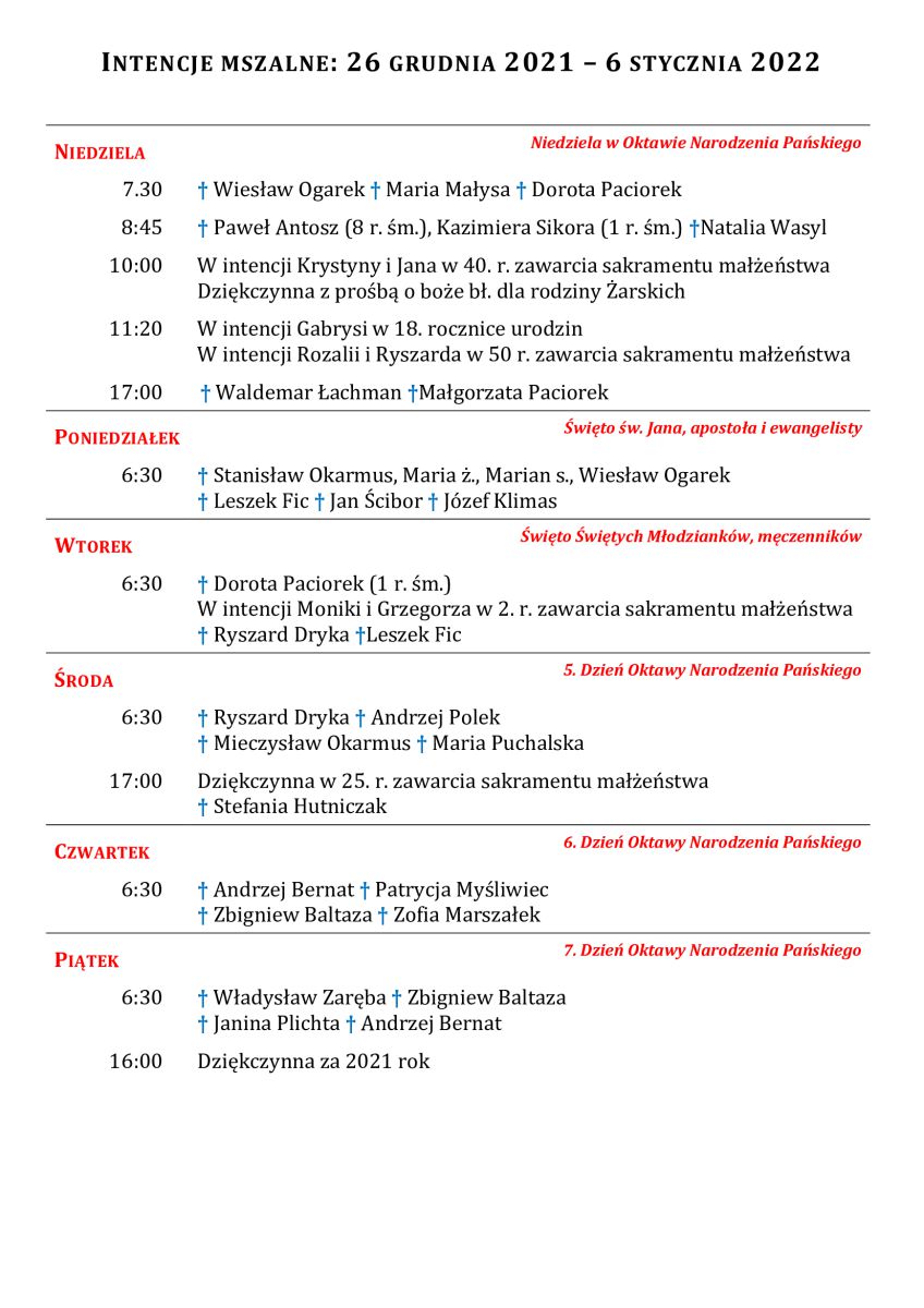 Intencje mszalne 26 grudnia 2021 r. – 6 stycznia 2022 r.