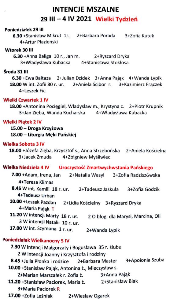 Parafia Radziszów – intencje mszalne 7-13 kwietnia 2014 r.