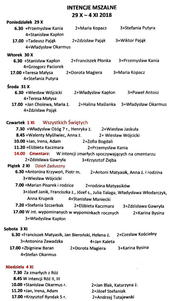 Intencje mszalne 29 października – 4 listopada 2018 r. przez Respighi · 28 października 2018 Strona 1 z 11