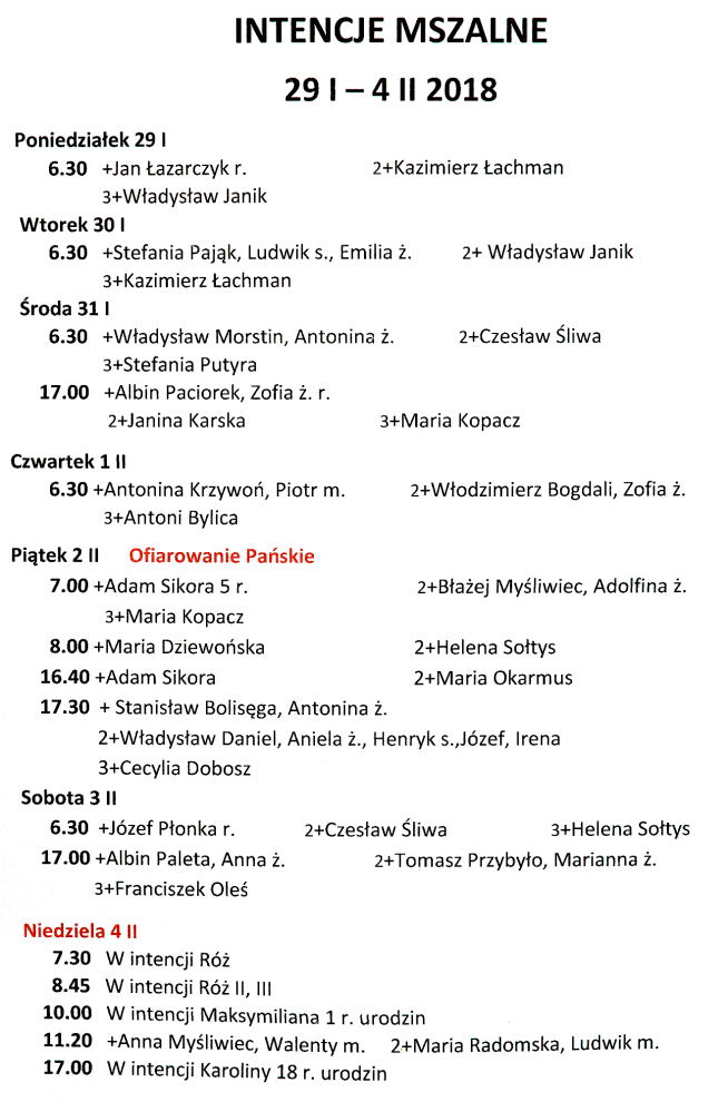 Intencje mszalne 17 – 23 listopada 2025 r.