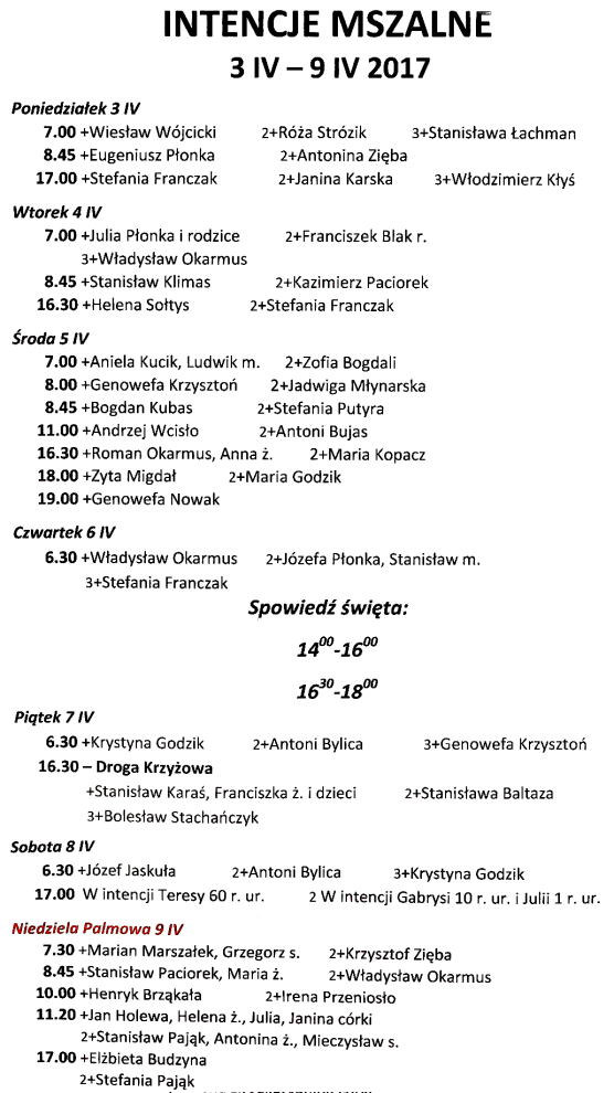 Parafia Radziszów – intencje mszalne 7-13 kwietnia 2014 r.