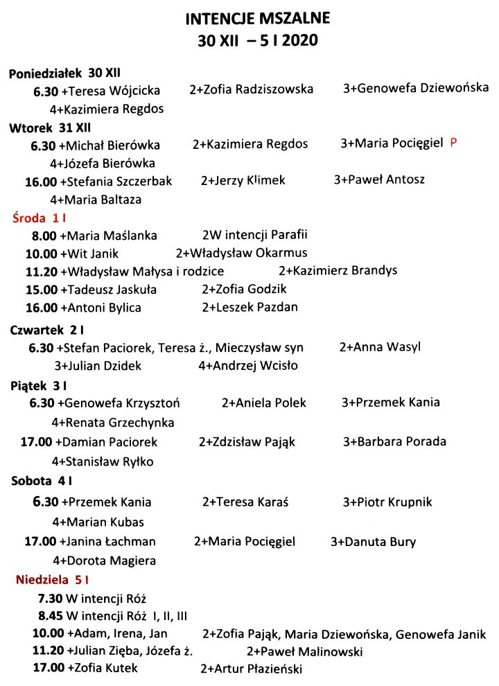 Intencje mszalne 30 grudnia 2019 r. – 5 stycznia 2020 r. przez Respighi · 29 grudnia 2019 Strona 1 z 11