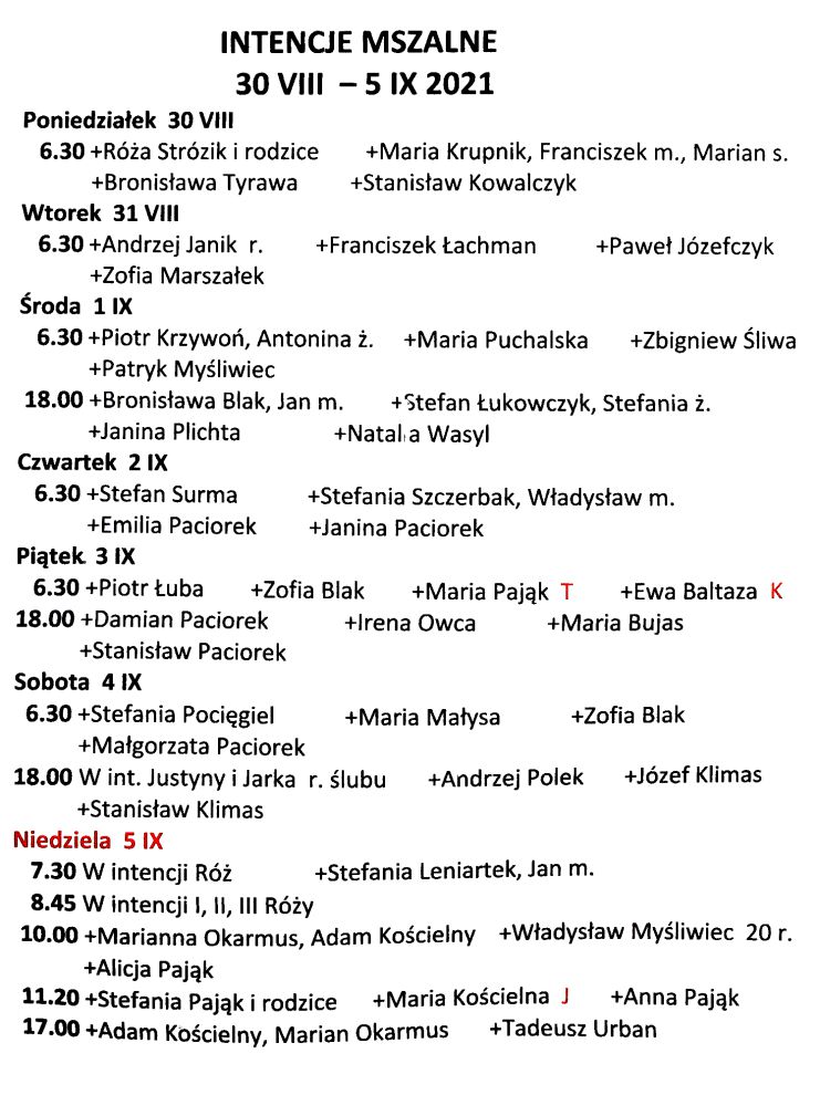 Intencje mszalne 17 – 23 listopada 2025 r.