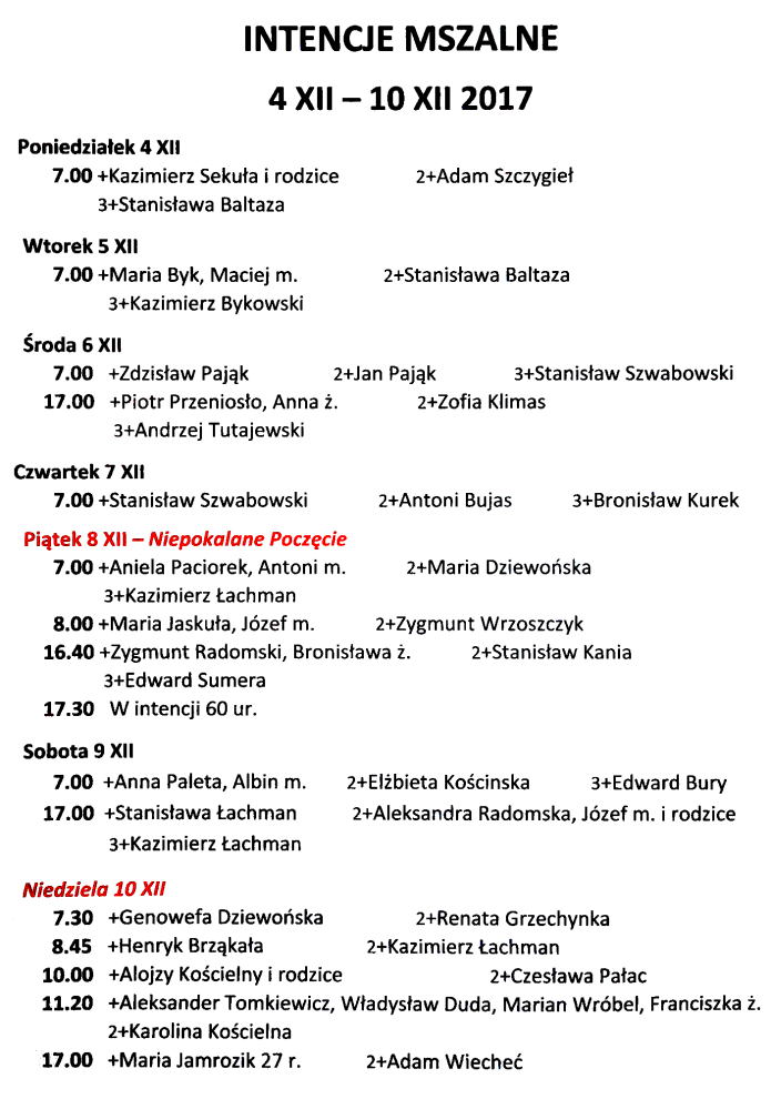 Intencje mszalne 17 – 23 listopada 2025 r.