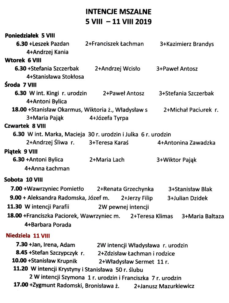 Intencje mszalne 17 – 23 listopada 2025 r.