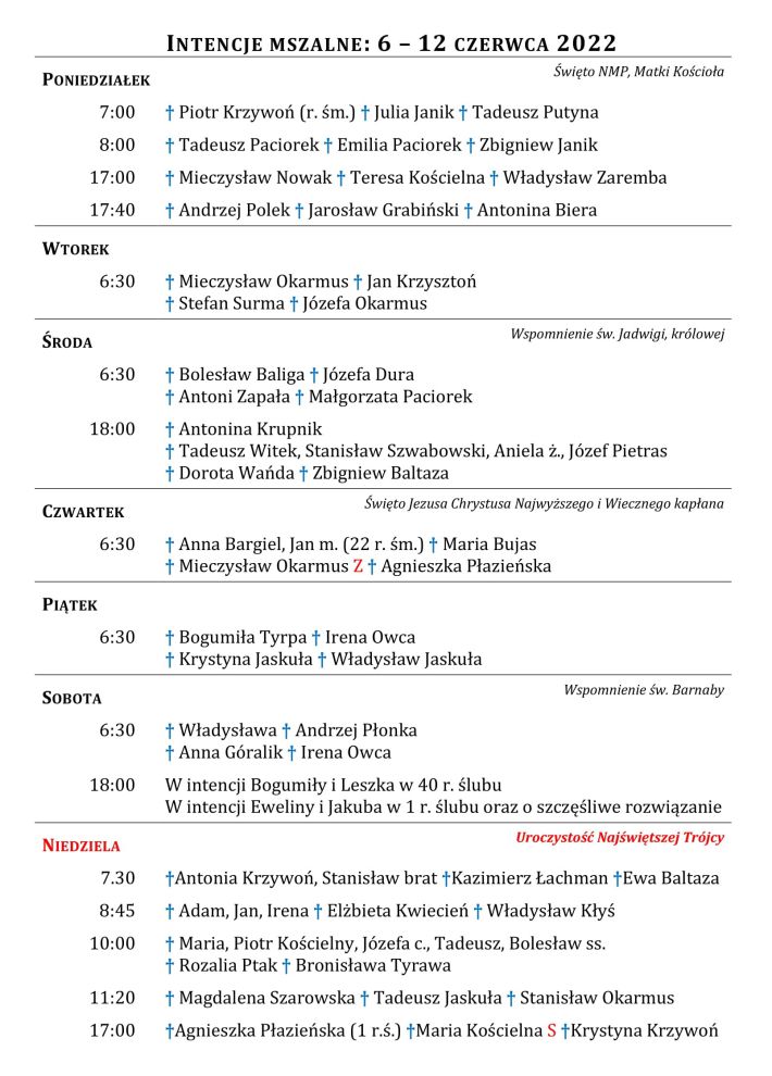 Intencje mszalne TOP
