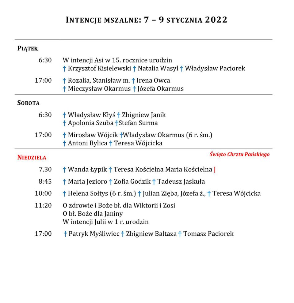 Intencje mszalne 7 – 9 stycznia 2022 r.