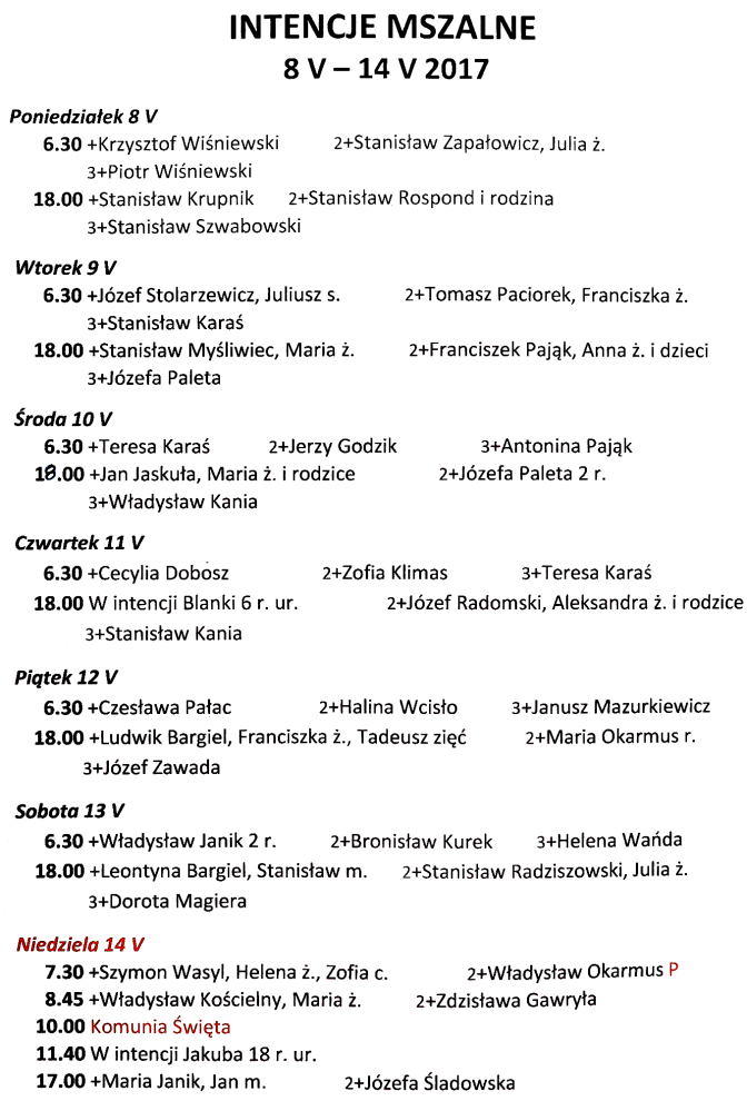 Parafia Radziszów – intencje mszalne 7-13 kwietnia 2014 r.