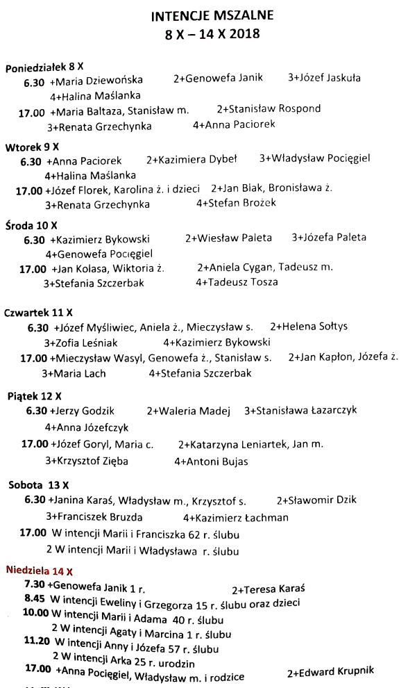 Intencje mszalne 17 – 23 listopada 2025 r.