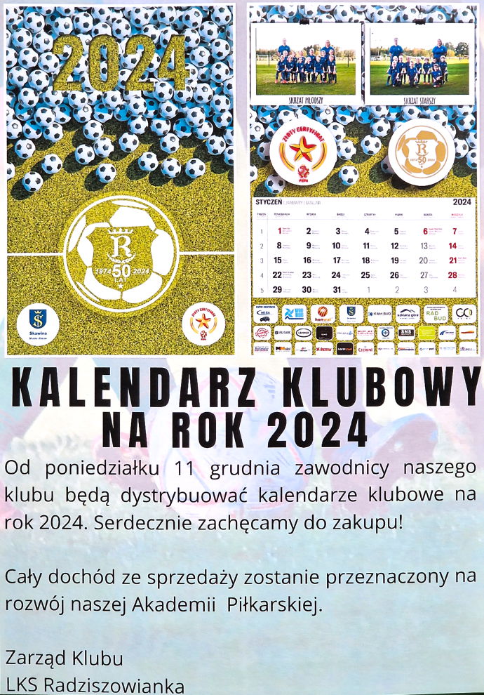 Od poniedziałku Sportowcy z Radziszowianki będą chodzić z kalendarzami.