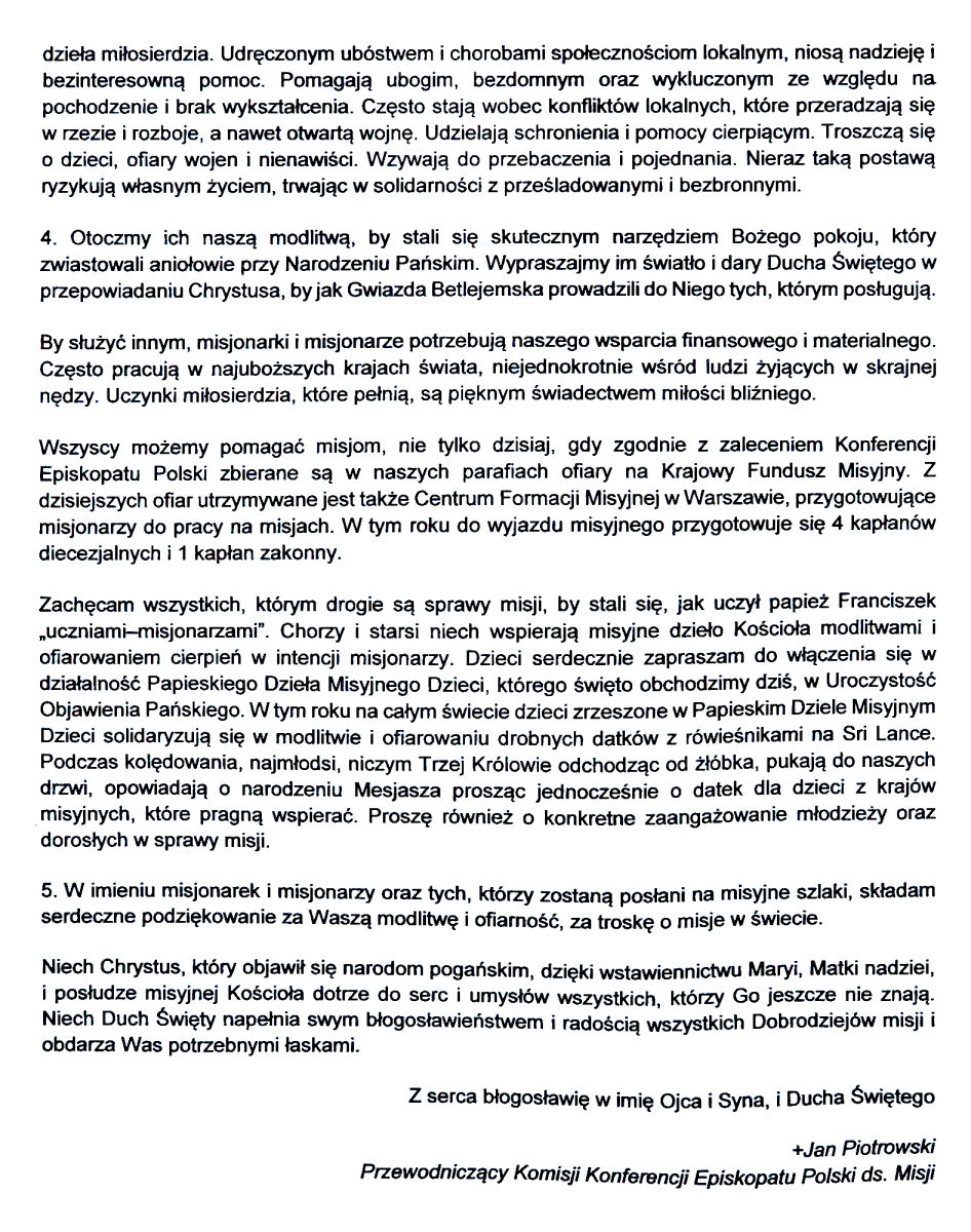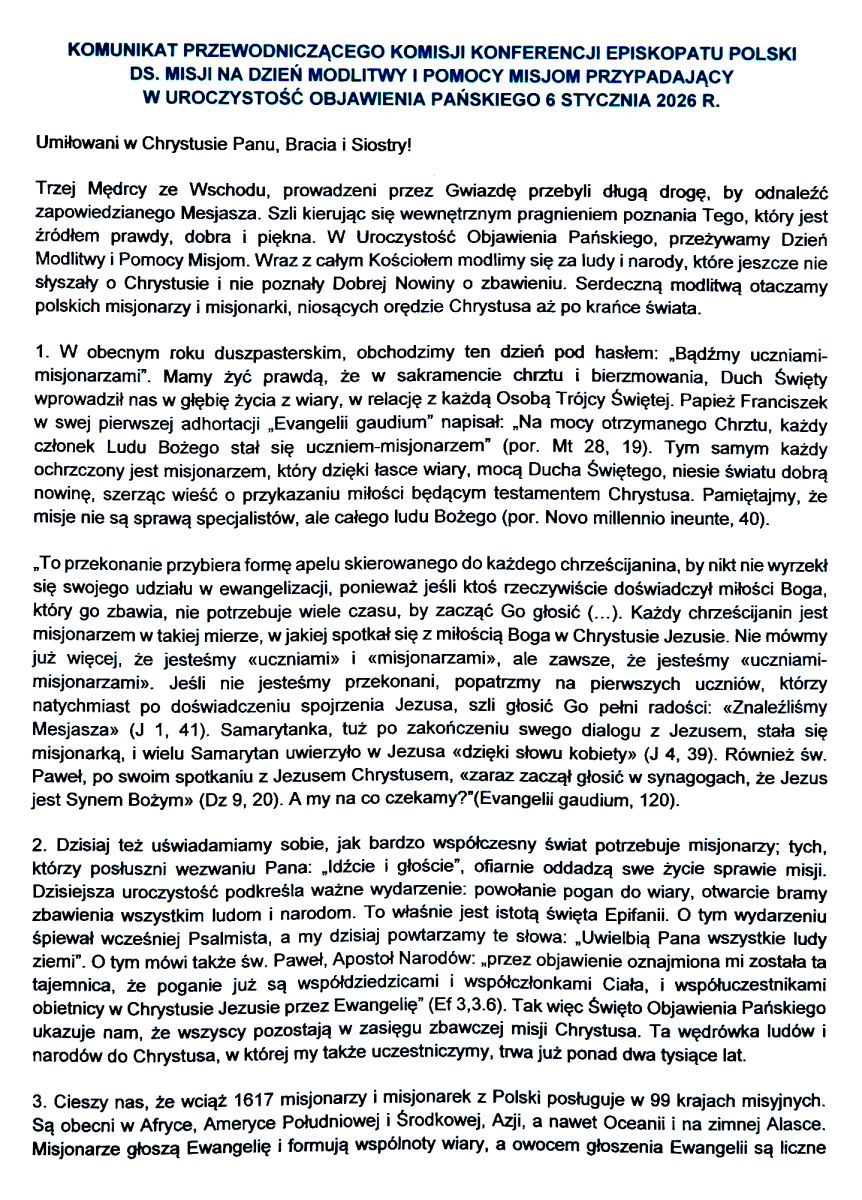 We wtorek uroczystość Objawienia Pańskiego, czyli Trzech Króli. Msze Święte jak w niedzielę. Na Mszach Świętych błogosławieństwo kadzidła. W tym dniu Ministranci będą zbierać ofiary do puszek na cele misyjne.