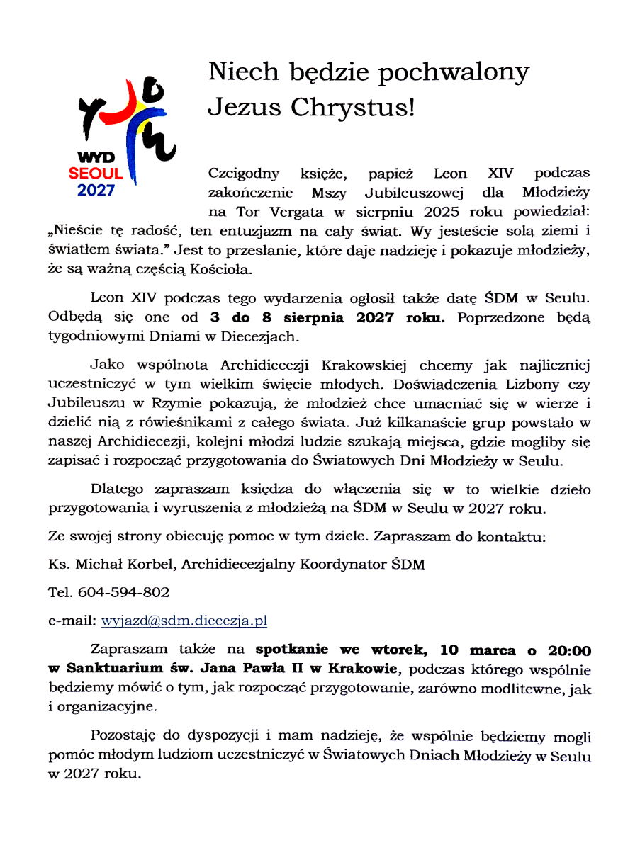 Papież Leon XIV zaprasza młodzież do Seulu na Światowe Dni Młodzieży.
