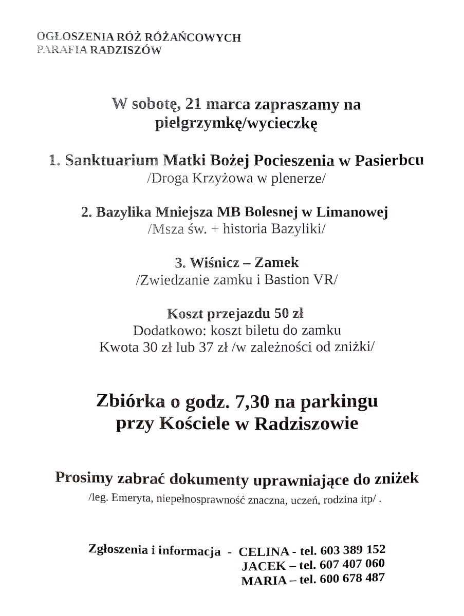 Róże Różańcowe zapraszają na wycieczkę, pielgrzymkę.