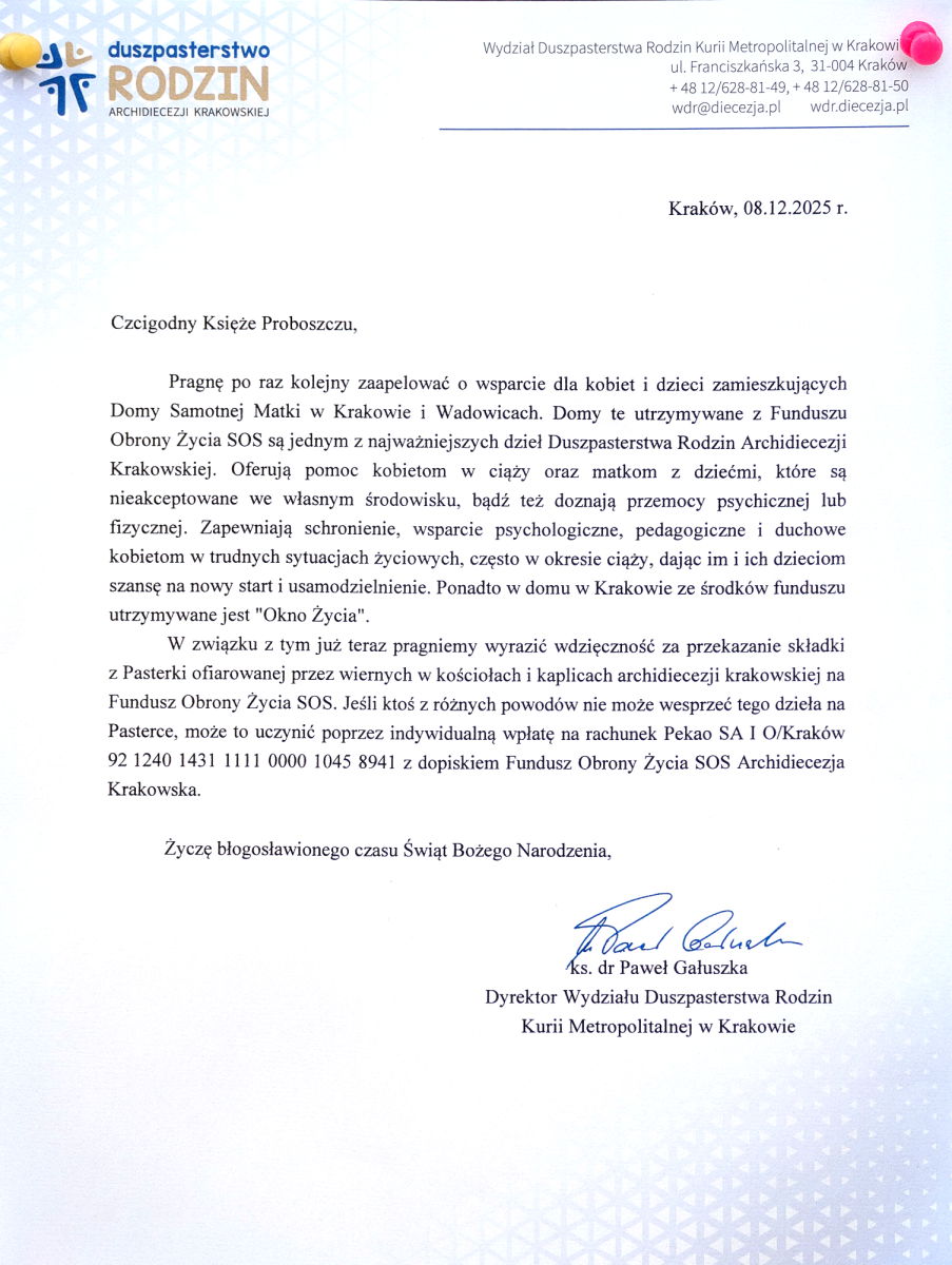 Podczas Pasterki składka przeznaczona będzie na Dom Samotnej Matki.